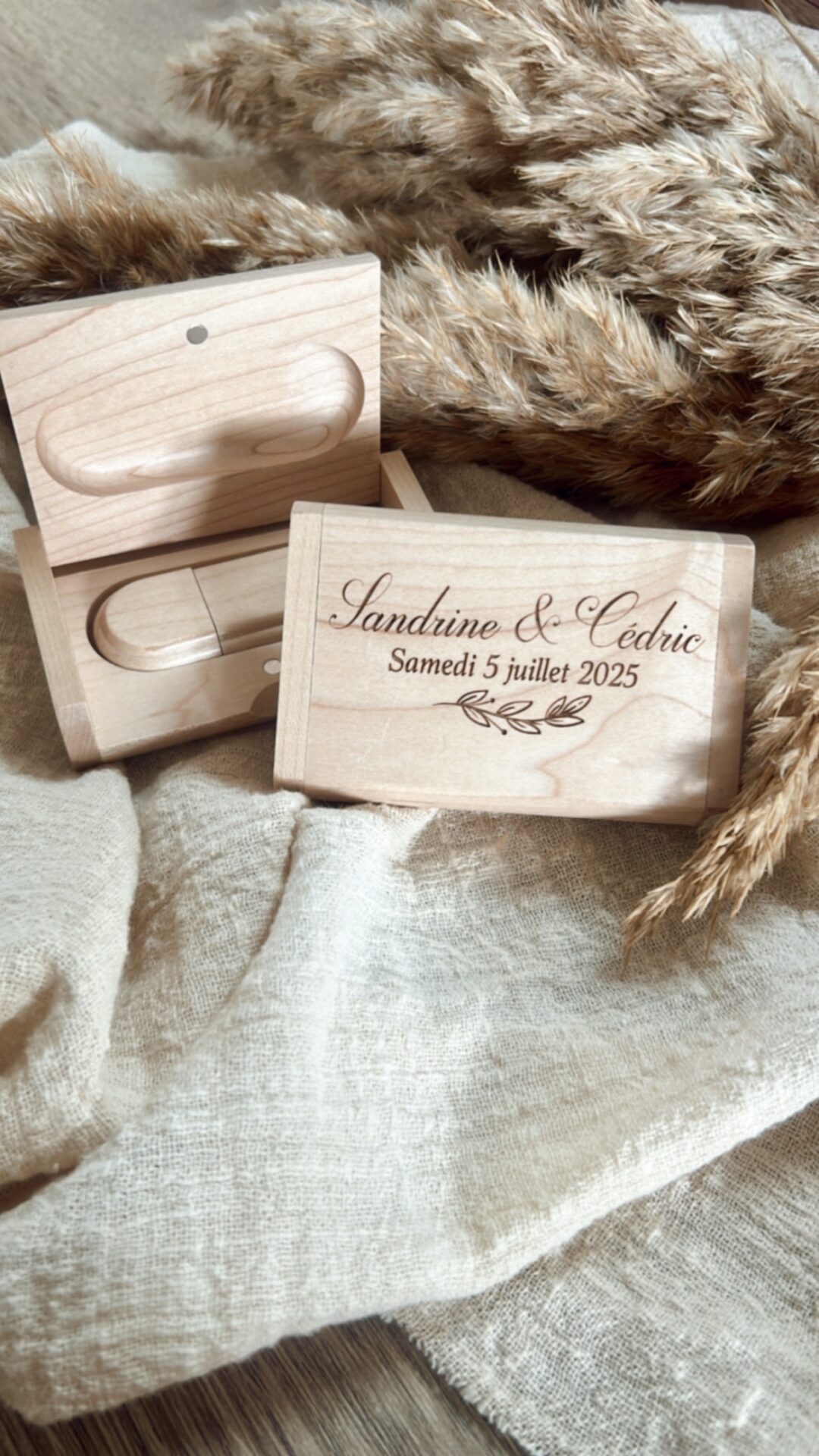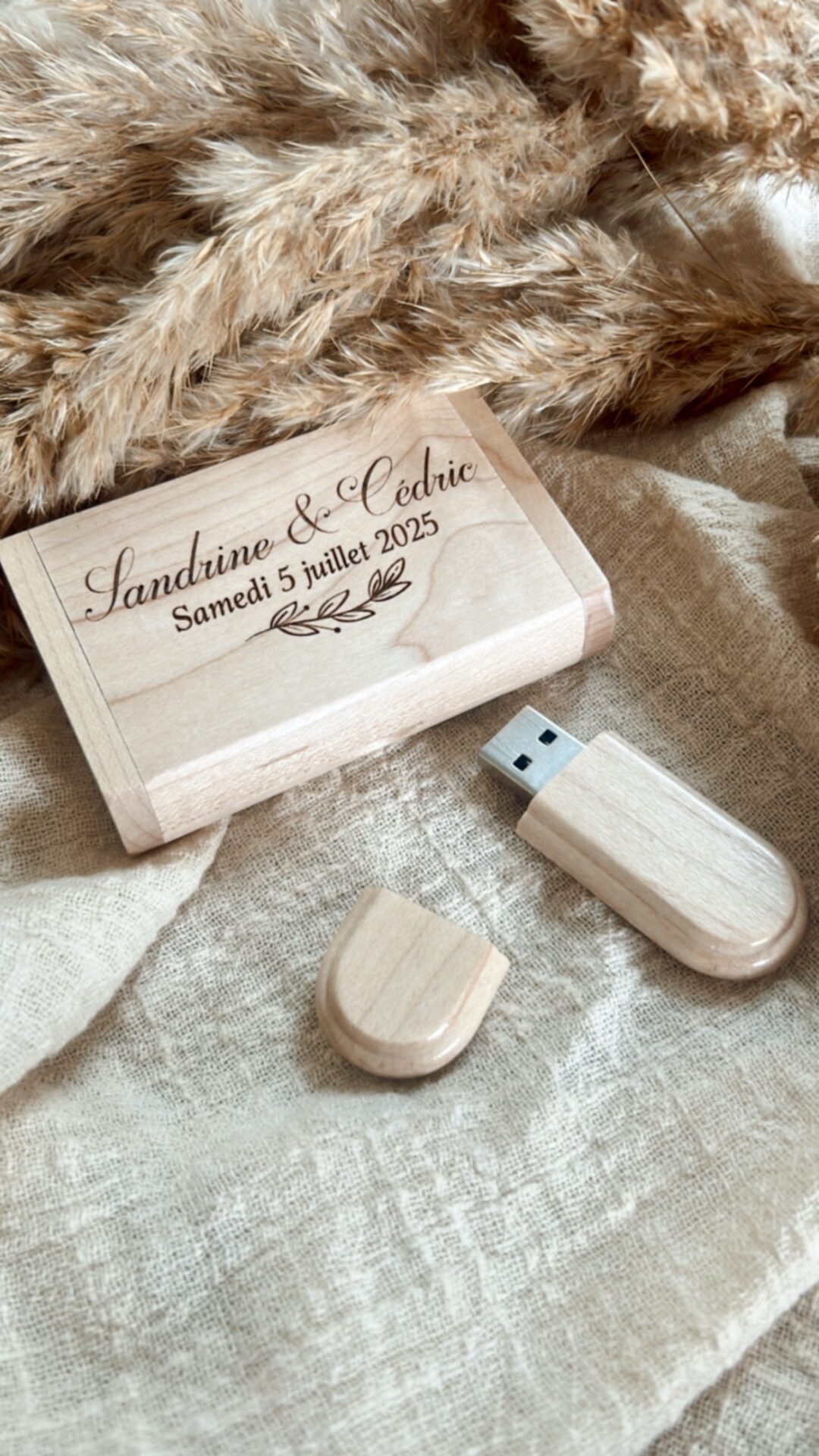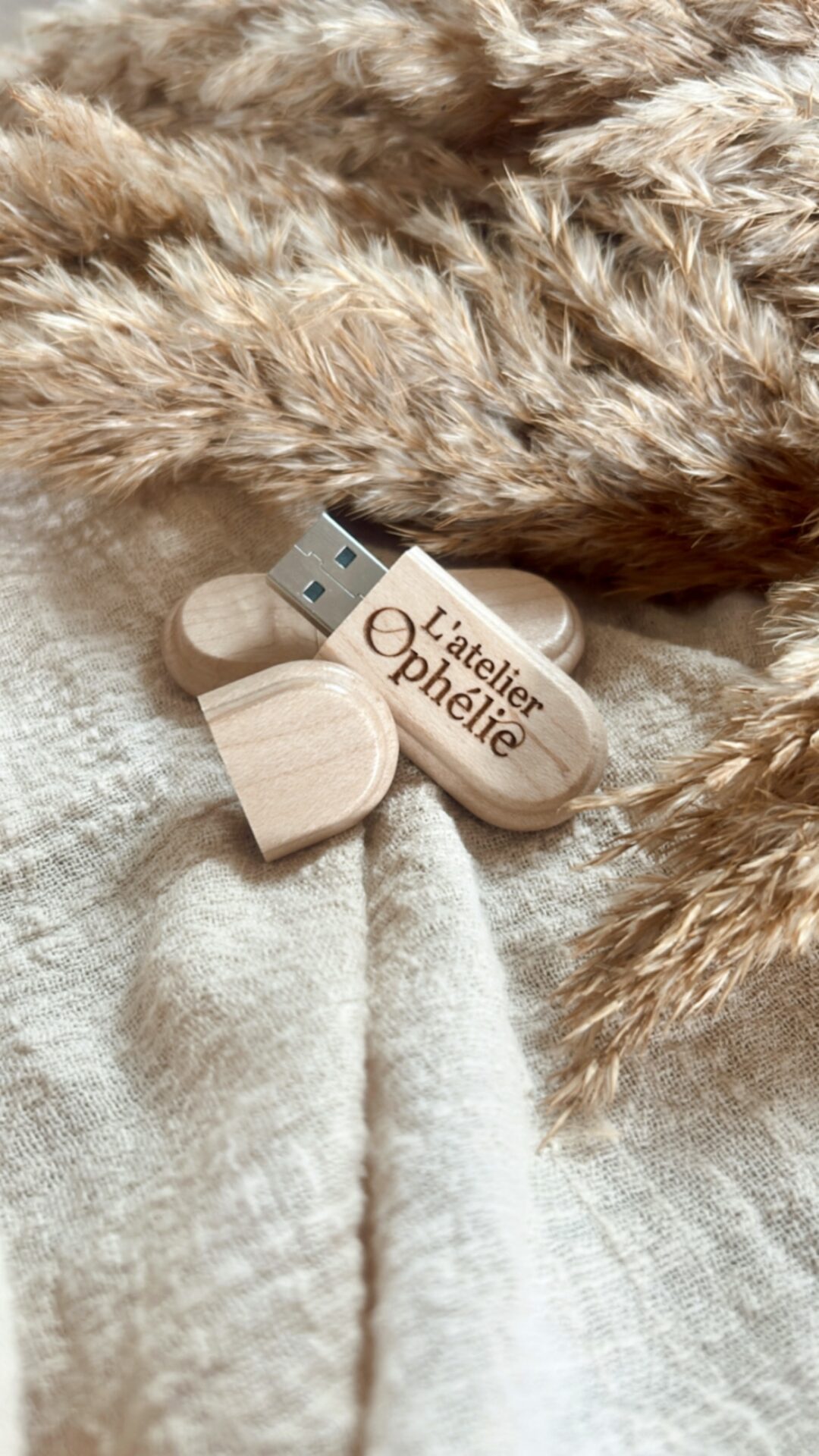 Clé USB à personnaliser pour stocker vos fichiers ou vos photos d’un événement marquant mariage, baptême, anniversaire. Mais également personnalisable avec votre logo d’entreprise pour stocker vos fichiers. Même juste un prénom pour savoir à qui appartient la clé usb.